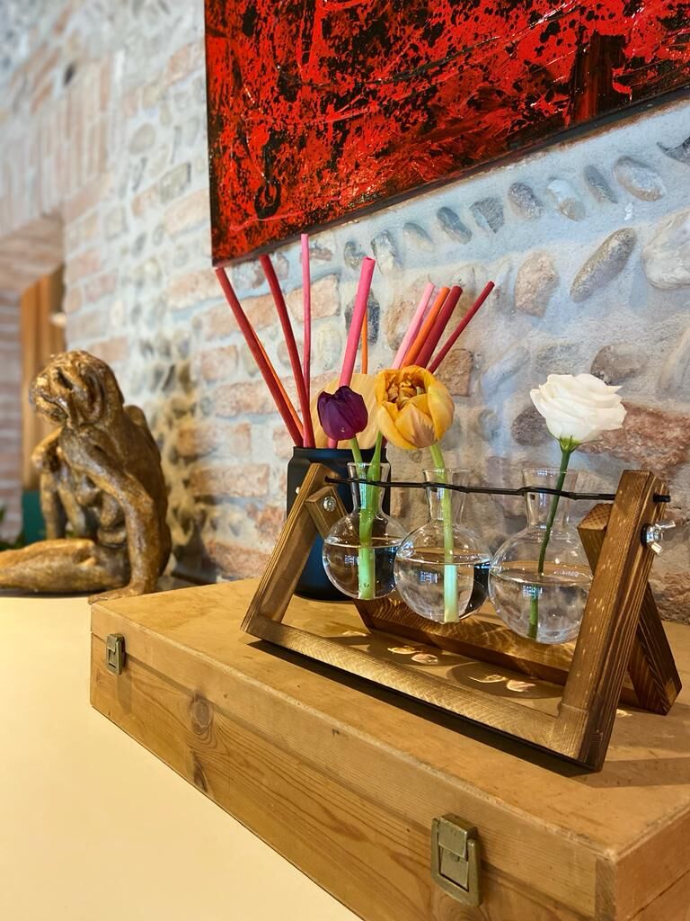 Dove vedeva sorgersi un antico granaio, in una piazzetta che ricorda una piccola calle Veneziana o un chiostro di una Villa Palladiana,